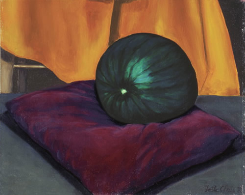 Melon on Cushion, 1990, oil on canvas, 40x50 cm