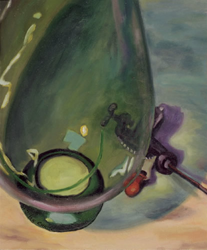 Vaso verdognolo con fuso, 1998, olio su tela, 28x36 cm